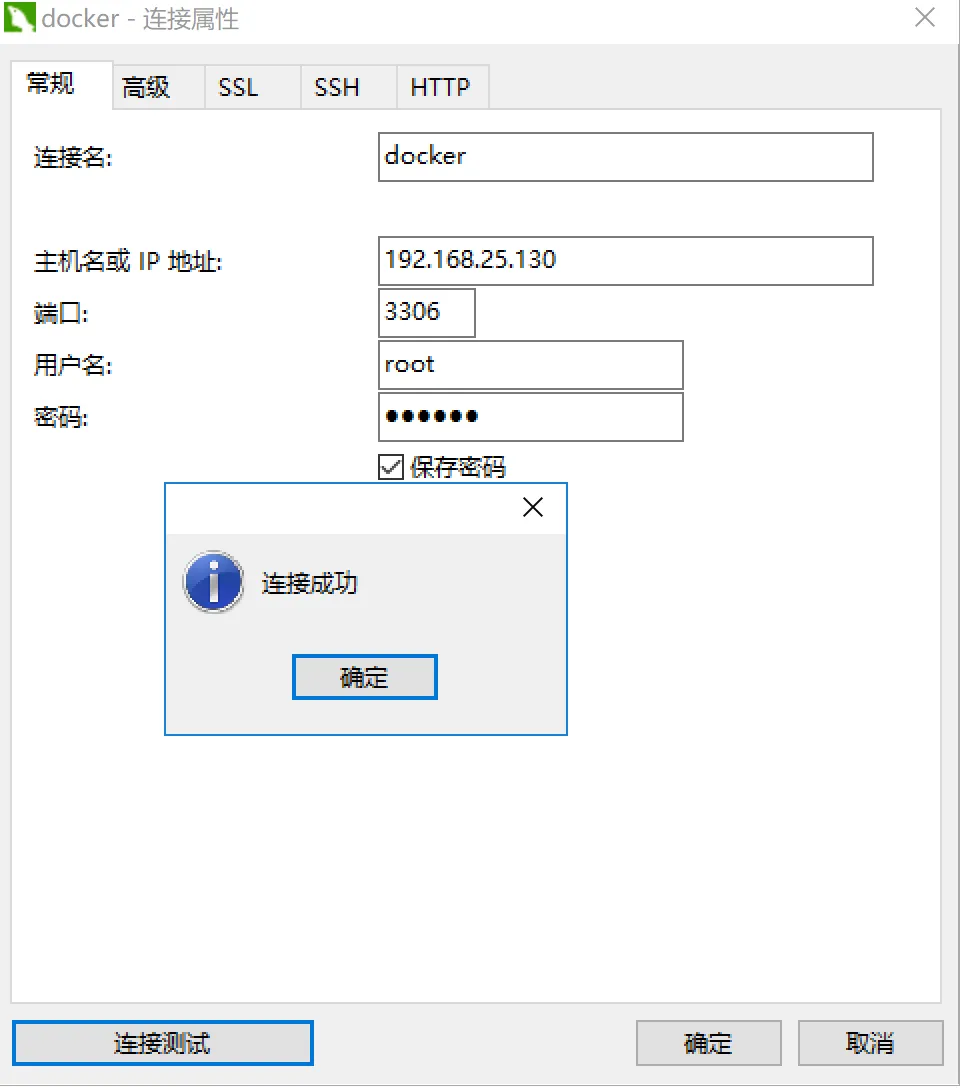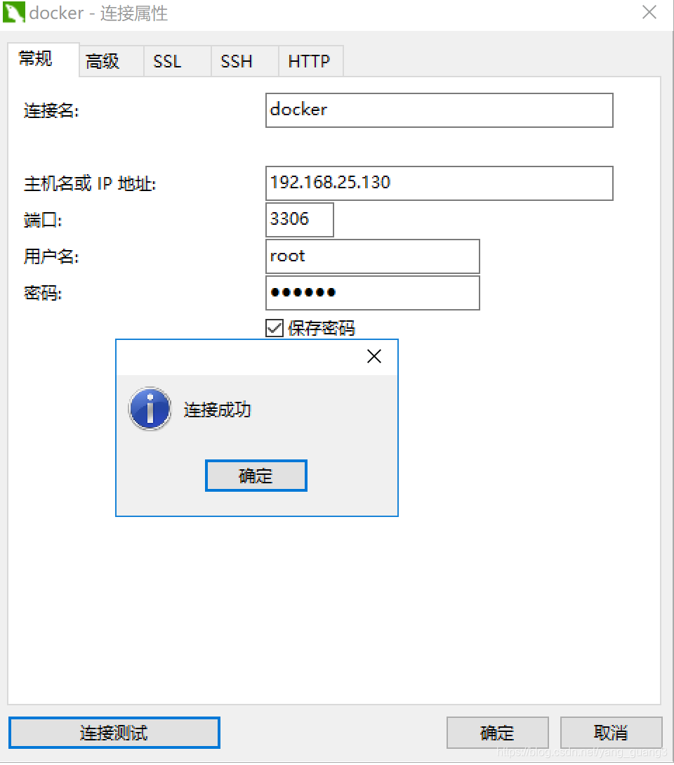 然后使用navicat进行测试(注意:此处连接的是虚拟机的IP地址):