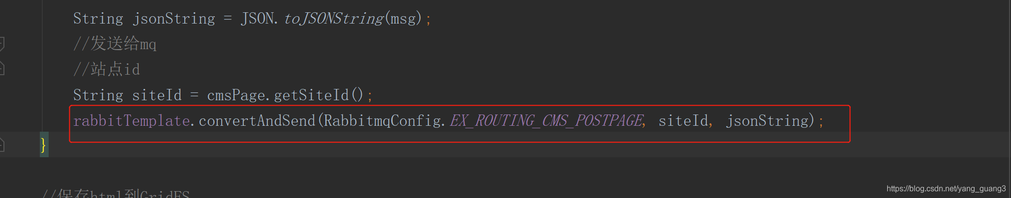 该方法执行完成调用rabbitTemplate.convertAndSend方法发送消息:
