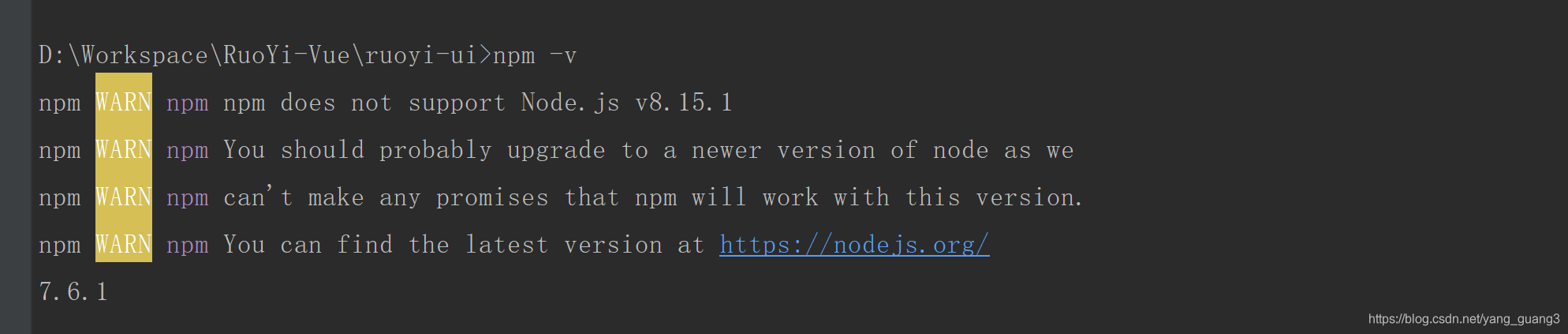 当查询npm版本时候报如下错误: