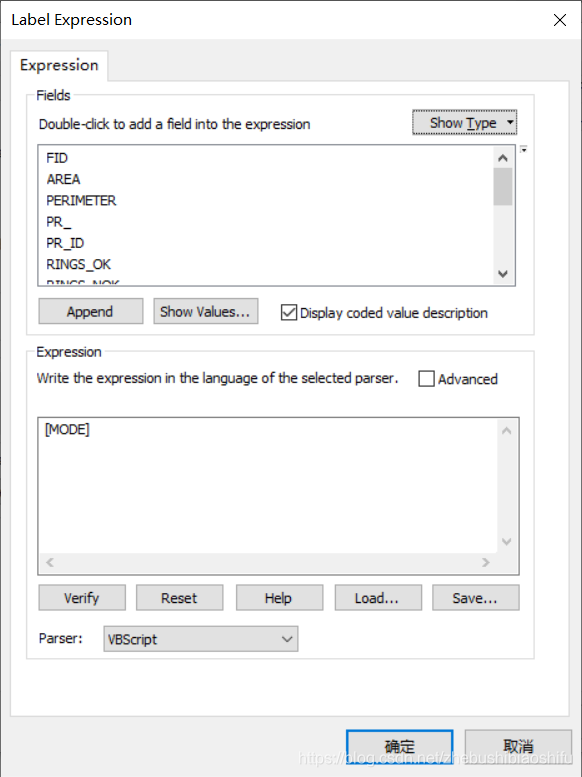 点击“Expression”,即可配置标签显示哪一个字段对应的内容。