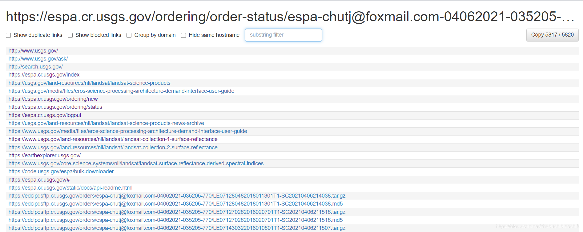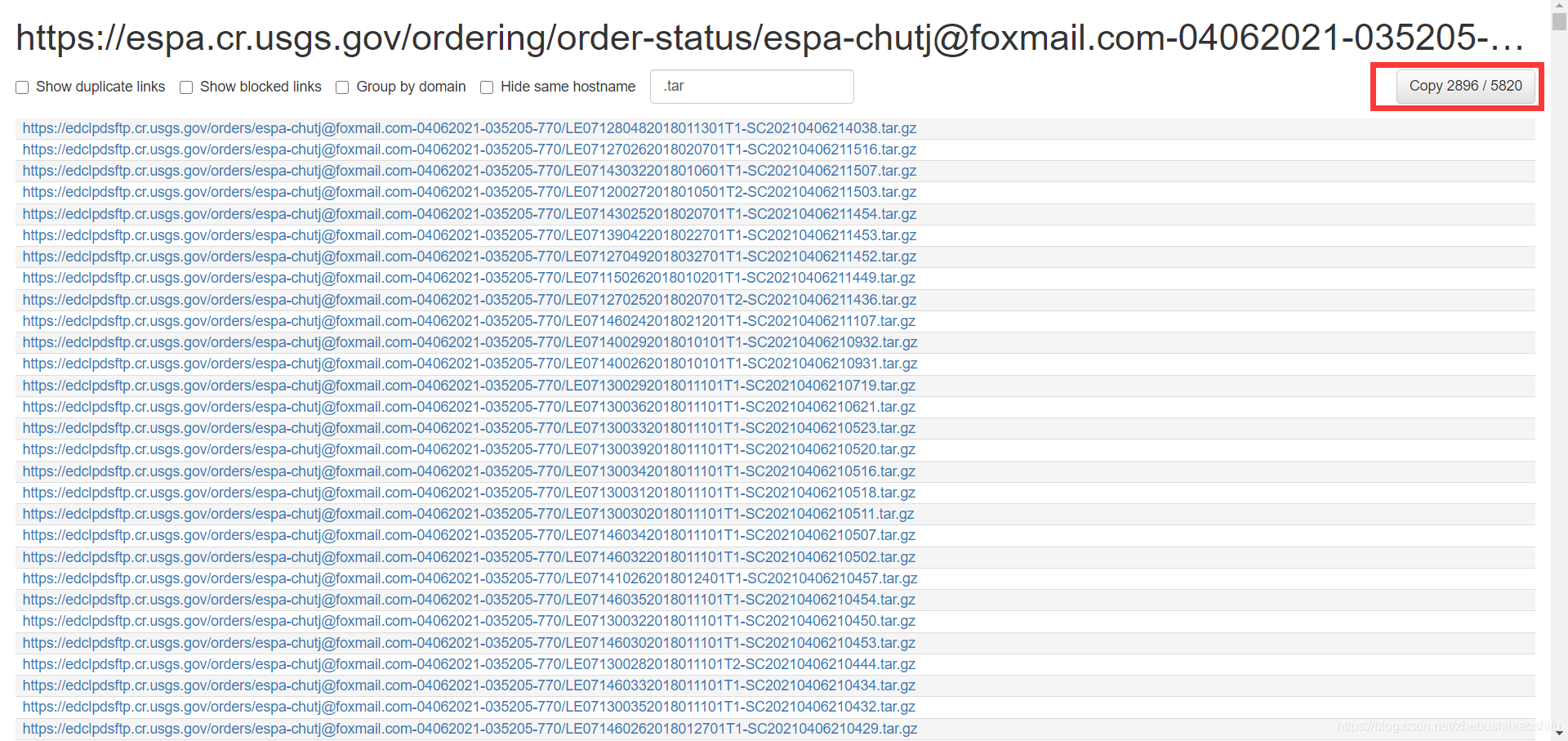 可以看到,所有带有.tar的链接都被提取出来了。随后,我们点击这一页面右上角的复制按钮,即可将筛选出的全部链接复制到剪切板。