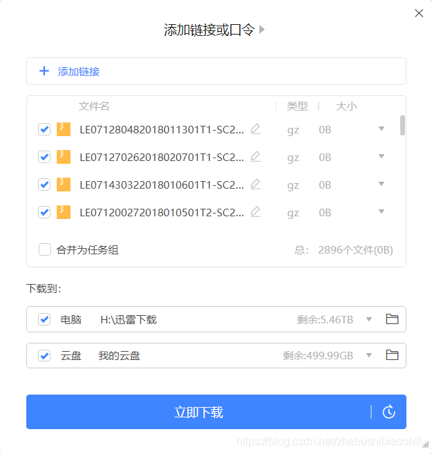 打开迅雷,由于迅雷默认开启了监视剪切板功能,因此直接就会将我们刚刚复制的链接读取;可以看到,需要下载的两千多个遥感影像文件已经全部出现在待下载窗口了。