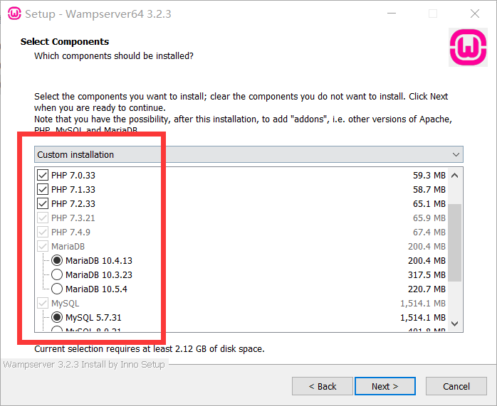 这里选择图片中红框里选中的,php版本可以选择单个也可以多个,这里建议多个