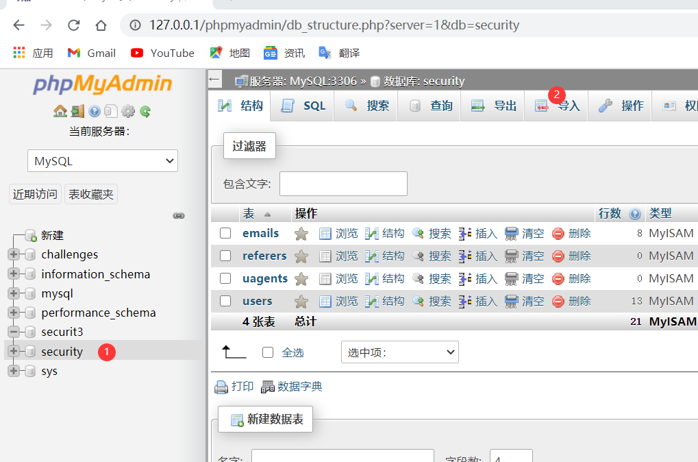导入完成后打开浏览器访问http://127.0.0.1/sql1
