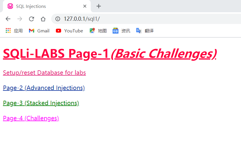 有了上图的结果恭喜你完成了sql注入平台的搭建,下面开始我们的第一个SQL注入吧!