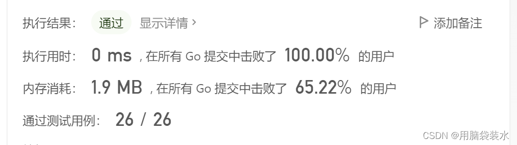 func lengthLongestPath(input string) int { if input == "" || len(input) == 0 || !strings.Contains(input, ".") { return 0 } // 该字符串相当于树的dfs深度优先搜索 // dir\n\tsubdir1\n\t\tfile1.ext\n\t\tsubsubdir1\n\tsubdir2\n\t\tsubsubdir2\n\t\t\tfile2.ext // [dir \tsubdir1 \t\tfile1.ext \t\tsubsubdir1 \tsubdir2 \t\tsubsubdir2 \t\t\tfile2.ext] words := strings.Split(input, "\n") // pathLens[i]存放 第i层次的最后面的元素的路径长度 pathLens := make([]int, len(words)+1) // 层次最少是1,为了统一dp操作(具体看下面循环体),取pathLens[0]=-1 pathLens[0] = -1 var ans int // 自左向右,dp for _, word := range words { // 层次计算 // \t个数 代表层数 // 注意: // \n和\t都代表1位 而不是两位 // strings.LastIndex("\t\tsubdir1","\t") 返回的下标是1 level := strings.LastIndex(word, string('\t')) + 1+1 // 计算文件名长度 // word :"\tsubdir1" // len(word) : 8 // level:0 // nameLen:9 nameLen := len(word) - (level-1) // word的父文件夹必定目前是level-1层次的最后一个, // 因此pathLens[level-1]就是父文件夹路径长度 // 这个word必然是目前本层次的最后一个, // 因此需要刷新pathLens[level],+1是因为要加一个'\' pathLens[level] = pathLens[level-1] + 1 + nameLen // 如果是文件,用路径长度刷新ans if strings.Contains(word, ".") { ans = int(math.Max(float64(ans), float64(pathLens[level]))) } } return ans }