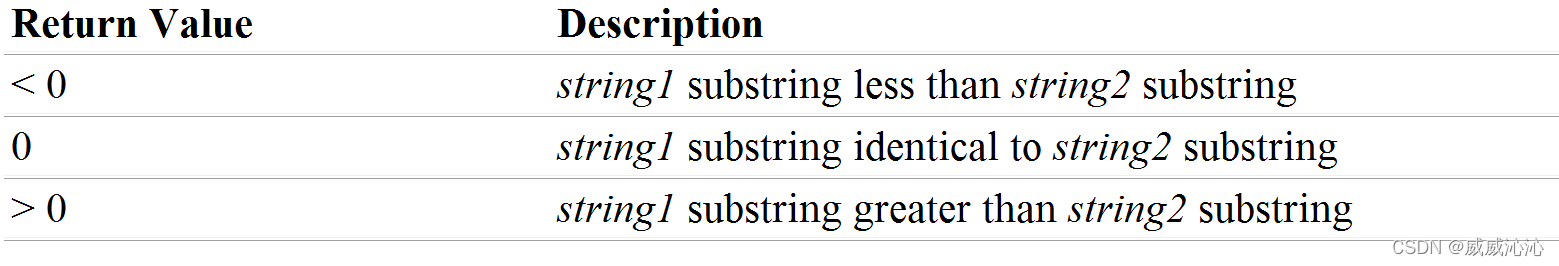 - 比较到出现另个字符不一样或者一个字符串结束或者num个字符全部比较晚。