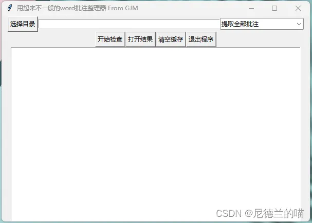 就以之前做的“用起来不一般的word批注整理器”为例(博客路径:【python脚本】word批注批量提取器V2实用版,资源路径:get_word_comments: 用于获取和整理word批注状态的软件,基于python与VBA编码),通过tk搭起来的界面是这样的: