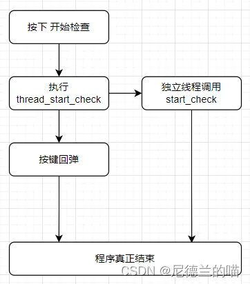 采用简单的方法组织的话,所有这些操作完成后“开始检查”按键对应的函数才执行结束,这个按键才会弹起来: