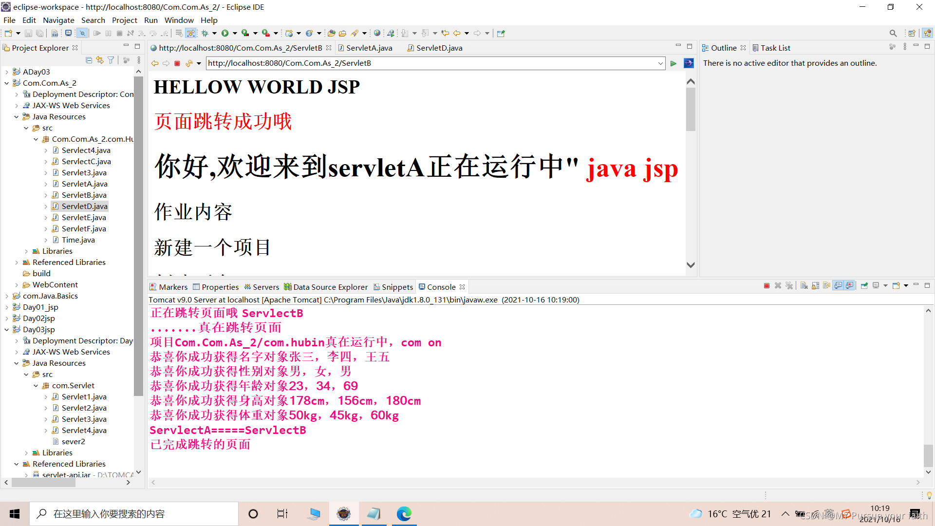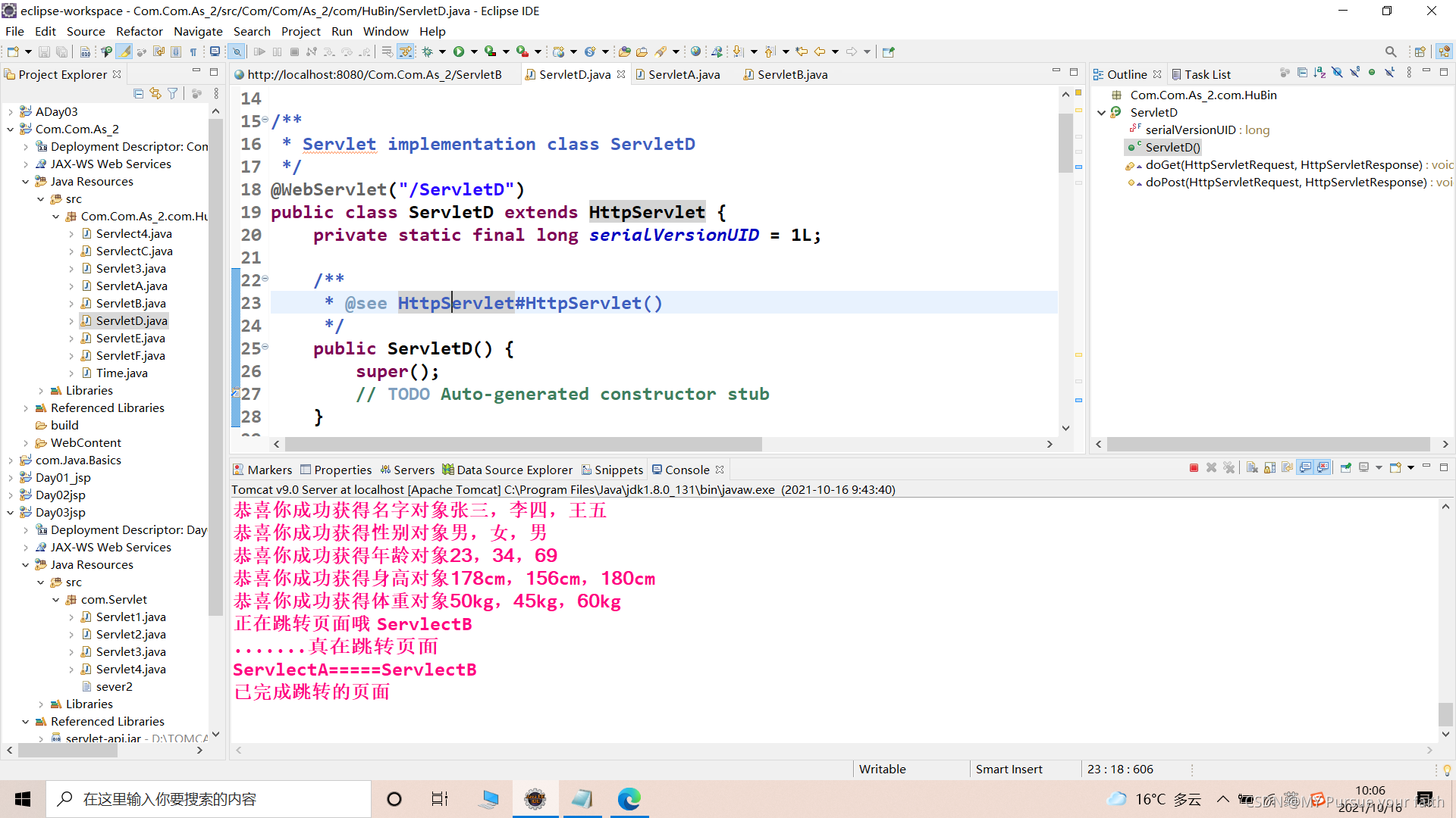 实现连续页面跳转(从servletD--servletA--servletB)