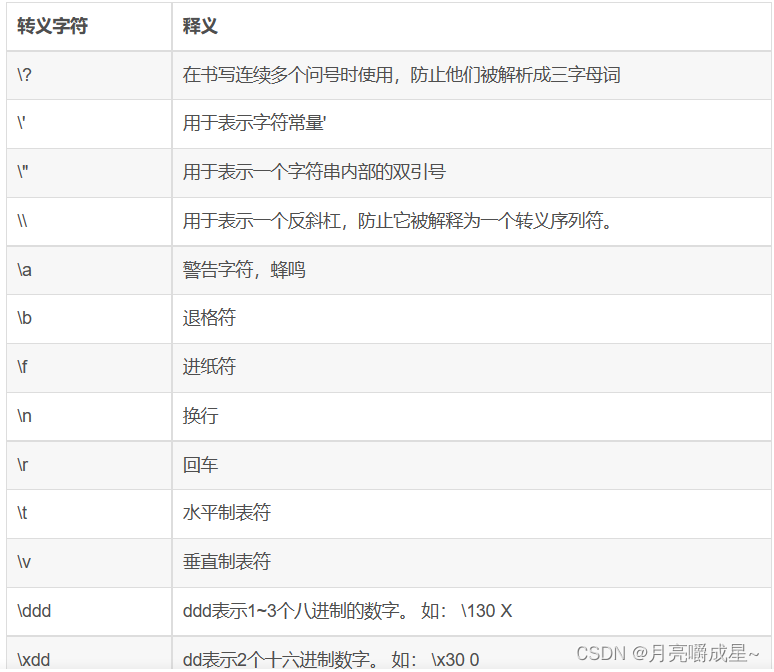 为什么会出现这样呢?这就不得不说一下转义字符了,详细的转义字符整理在下表