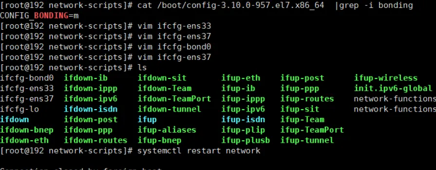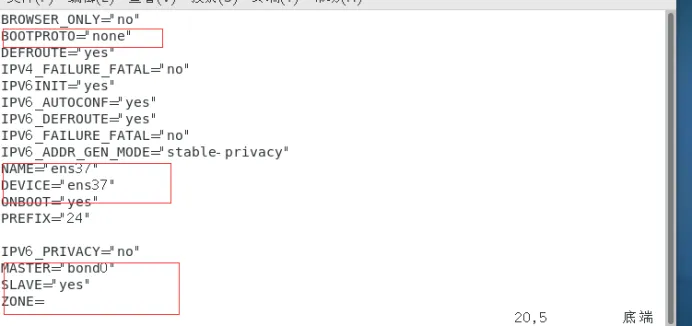 2.3修改配置文件vim /etc/modprobe.d/bonding.conf添加下列两行