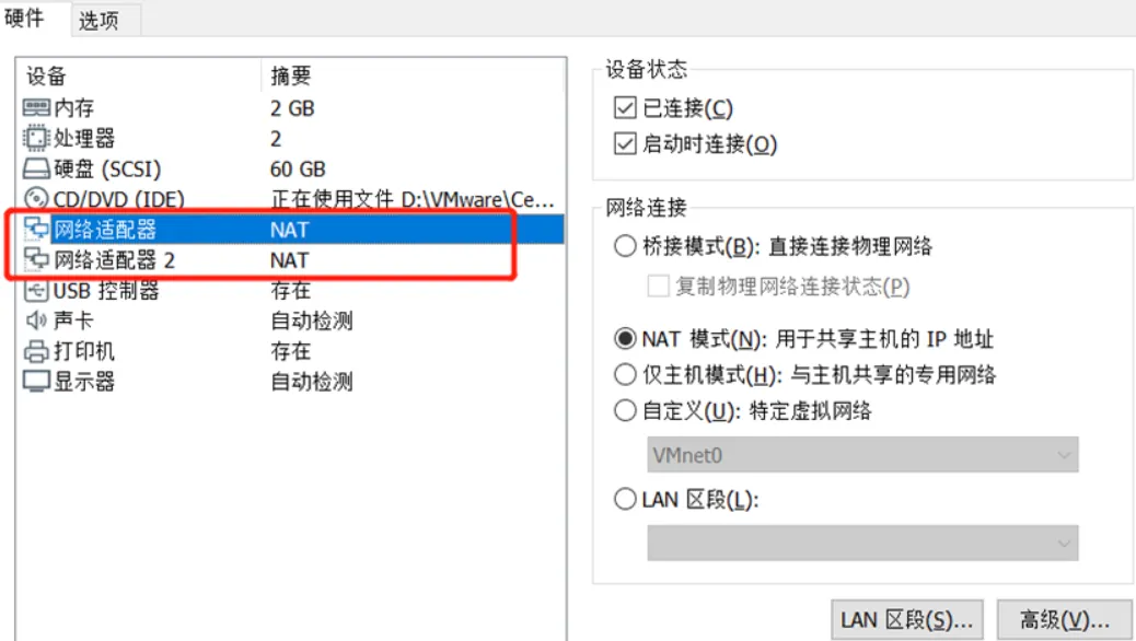 2.1 安装两张网卡
