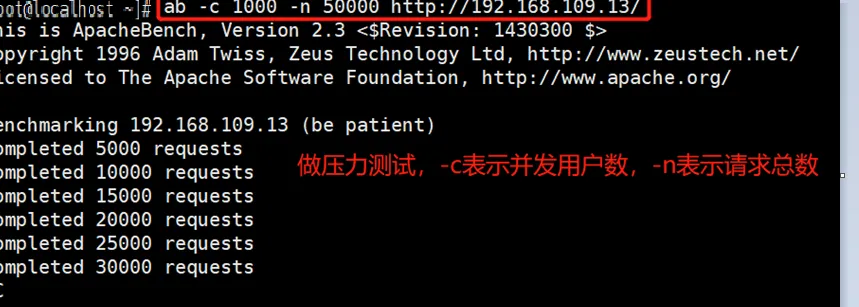 2.5重启机器,先开启httpd服务,然后选用另一台机器做压力测试,这台机器也要开启httpd服务。