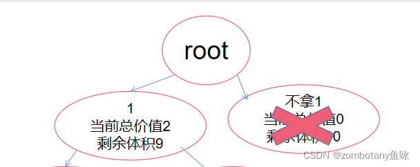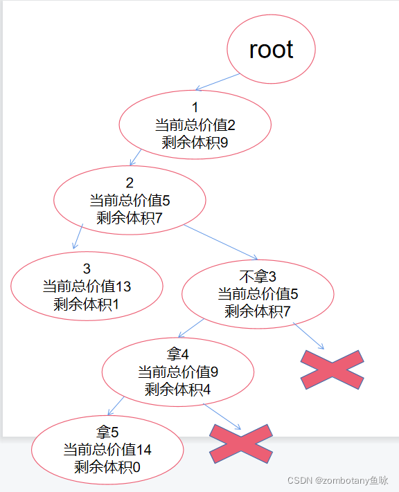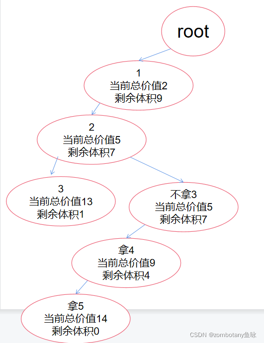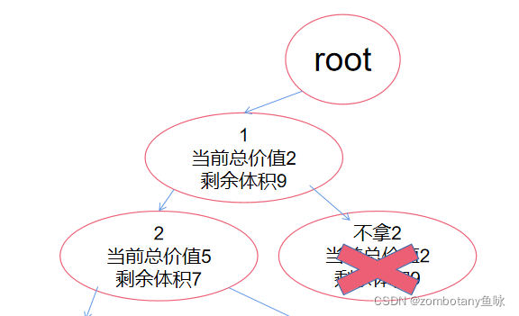 从该结点回溯到上一结点,并在访问右子树前分别计算每个结点的当前价值cp与剩余价值r,发现都可以将右子树直接剪枝剪掉。