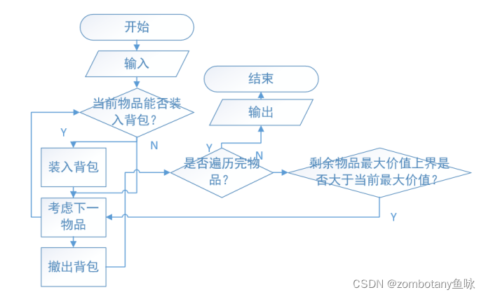 5.若不能装入该物品,则不将该物品装入,考虑下一物品。