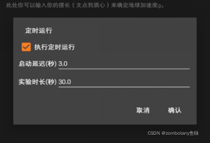 2.将手机的phyphox软件打开,选择“摆”这一项,并设置延时五秒后启动.