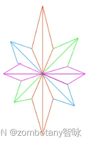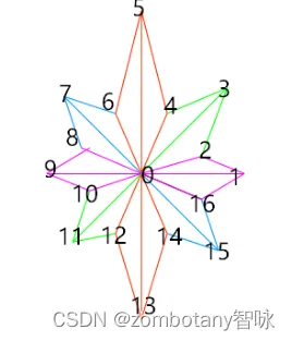 首先,为了绘制出北极星图形,需要构建顶点表和边表。将顶点按如图2的顺序进行编号,并预处理出所有顶点相对于中心点的坐标值。