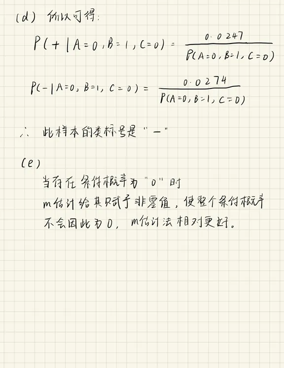 (c) 使用m估计方法(p=1/2且m=4)估计条件概率