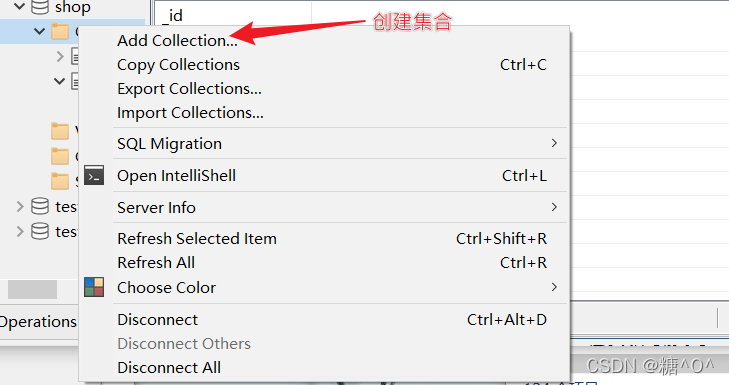 - 选中一个数据库,点击右键,点击 Add Collections