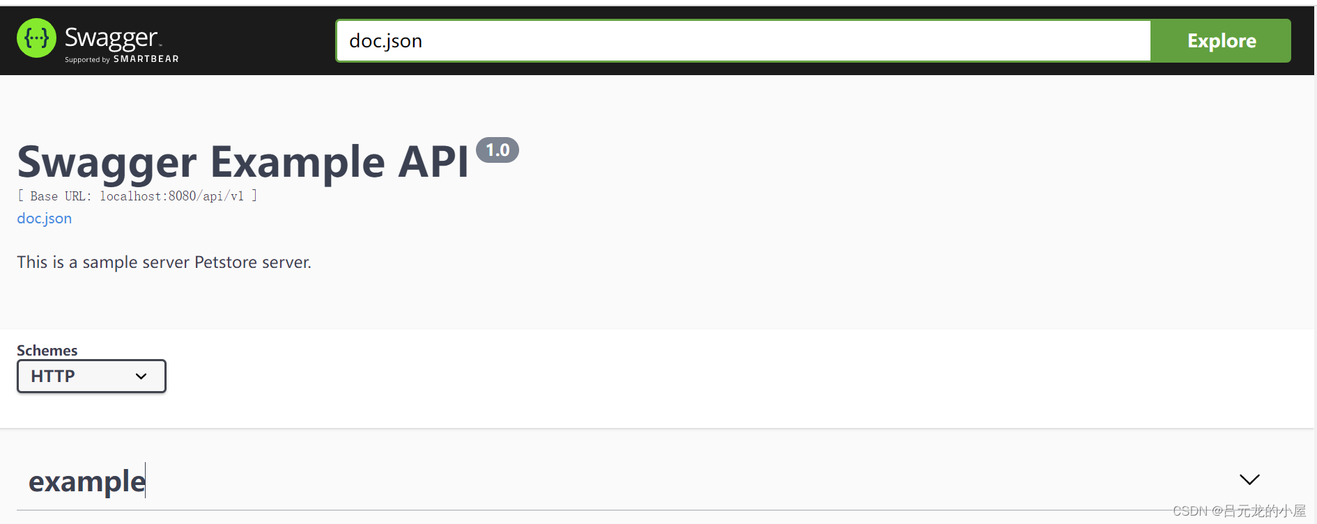 func main() { r := gin.Default() docs.SwaggerInfo.Title = "Swagger Example API" docs.SwaggerInfo.Description = "This is a sample server Petstore server." docs.SwaggerInfo.Version = "1.0" docs.SwaggerInfo.Host = "localhost:8080" docs.SwaggerInfo.Schemes = []string{"http", "https"} docs.SwaggerInfo.BasePath = "/api/v1" v1 := r.Group("/api/v1") { eg := v1.Group("/example") { eg.GET("/helloworld",Helloworld) } } r.GET("/swagger/*any", ginSwagger.WrapHandler(swaggerfiles.Handler)) r.Run(":8080") }