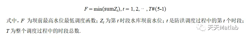 在水库的防洪调度目标中,最重要的调度目标是保障大坝的安全,其他的调度目标都是以此为前提和基础的。水库大坝安全事故基本都是由洪水超过大坝的最高水位引起的,过高的水位会造成溃坝,因此,坝前水位的高低对水库大坝的安全起着至关重要的作用。大坝安全调度的目标为使坝前最高水位达到最低值,目标函数如下