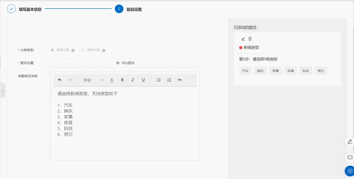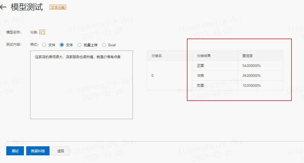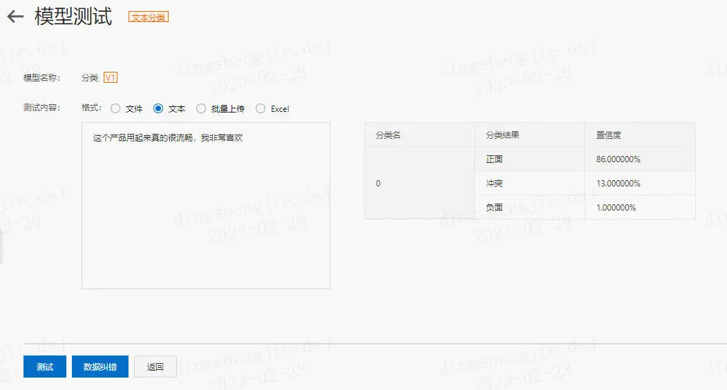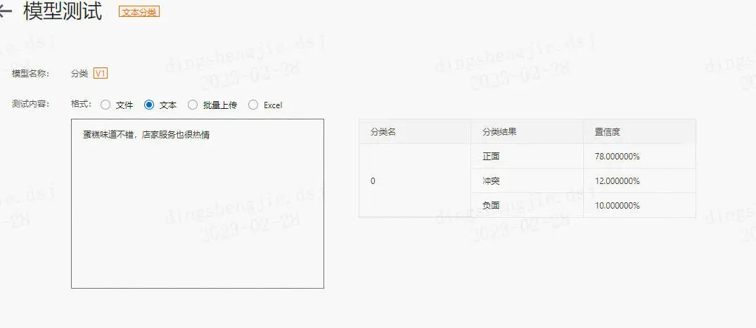 指对文本按照内容类型进行分类,例如短信场景中,运营商根据短信文本内容判断其对应的分类,例如涉黄、暴恐、涉政、广告等。本平台支持定制基于用户自建分类体系的分类模型。