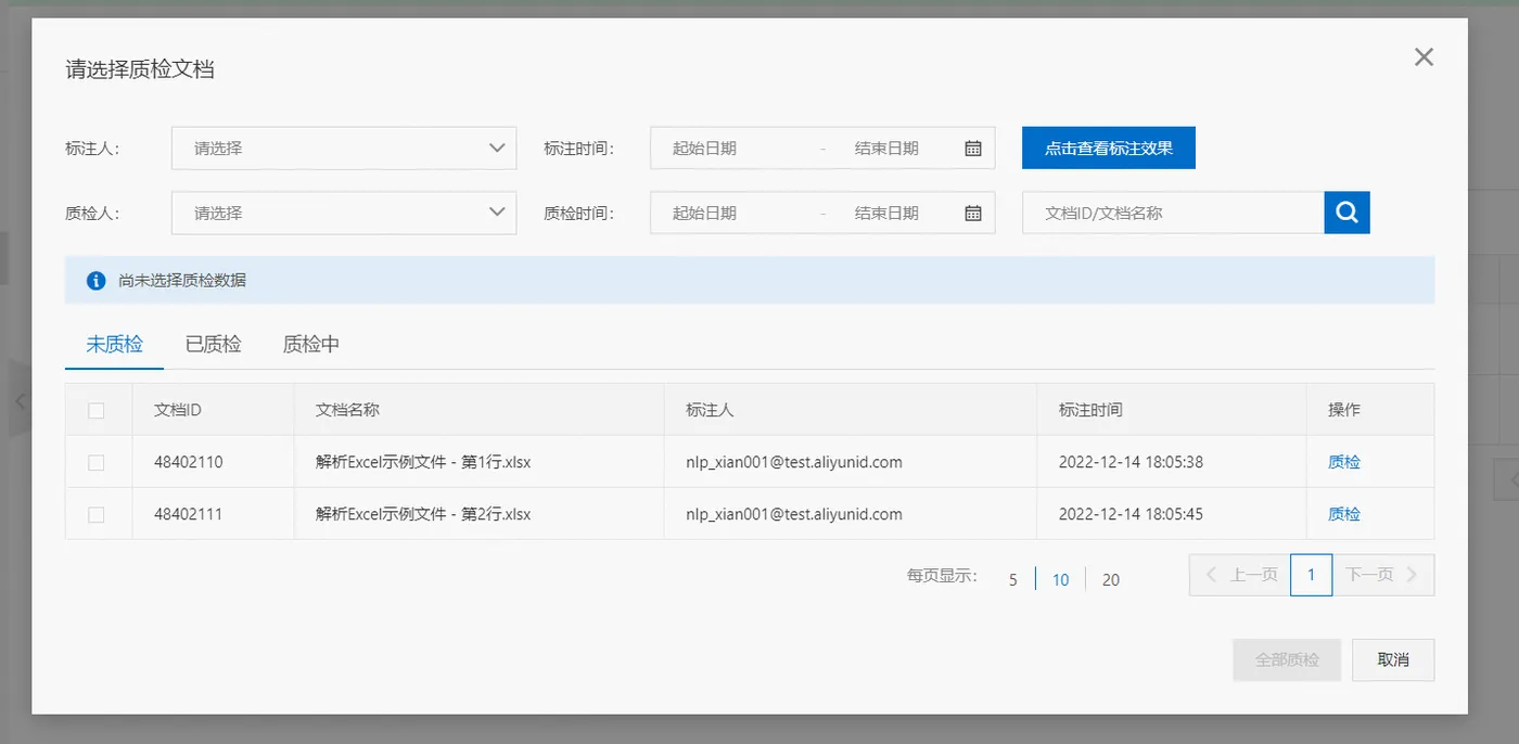 您可以通过筛选和搜索,质检已经标注好的文档,以确保良好的标注质量。