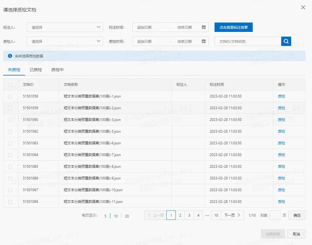 点击数据中心项目列表操作栏中的质检按钮,进入质检页面。