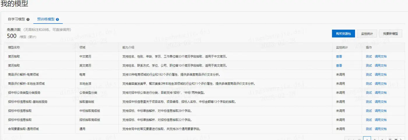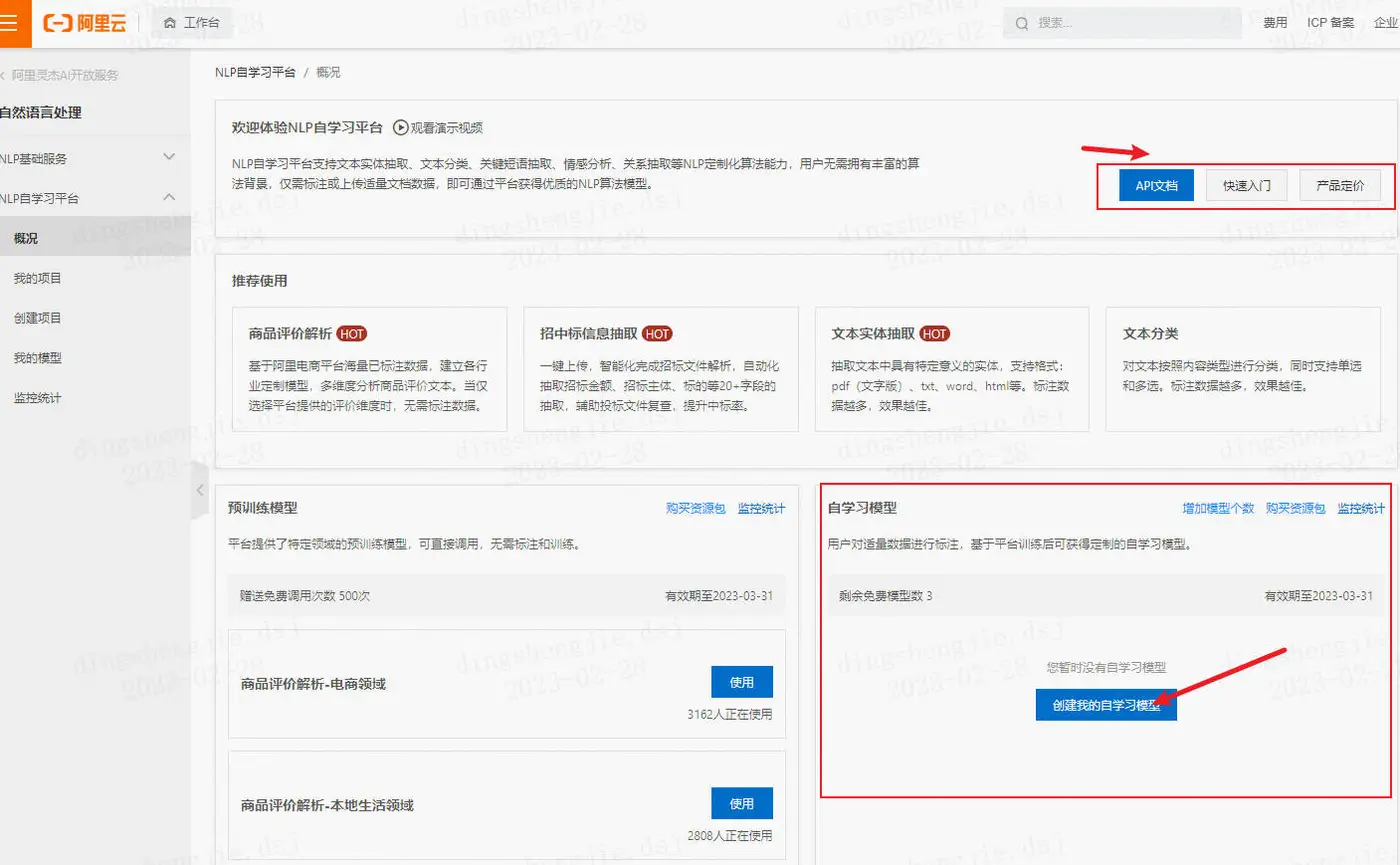 预训练模型使用前,请确认是否已经开通了NLP自学习平台服务,开通后可购买优惠资源包。