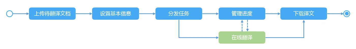 场景描述:我有若干文档需要翻译,我需要别人帮我一起翻译,我希望能够在线给别人指派任务并且可以跟踪翻译项目,这样可以提升我的项目管理效果;并且我希望能借助机翻结果和语料术语库进行翻译,这样相比在word或lark上翻译会更高效也更能保证翻译质量。