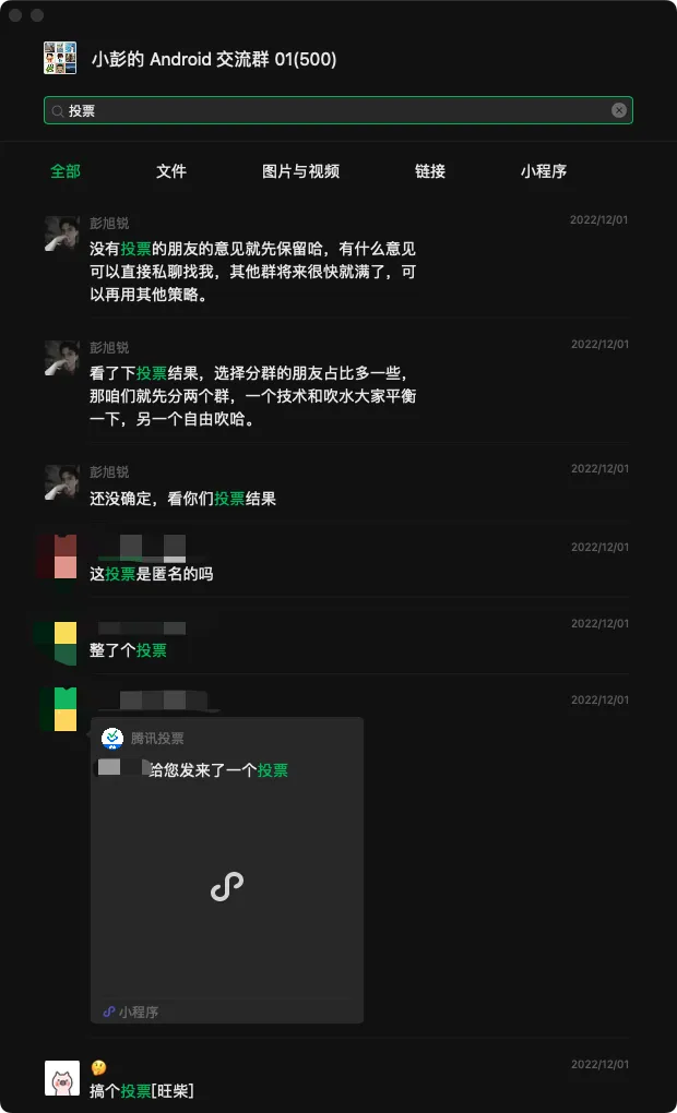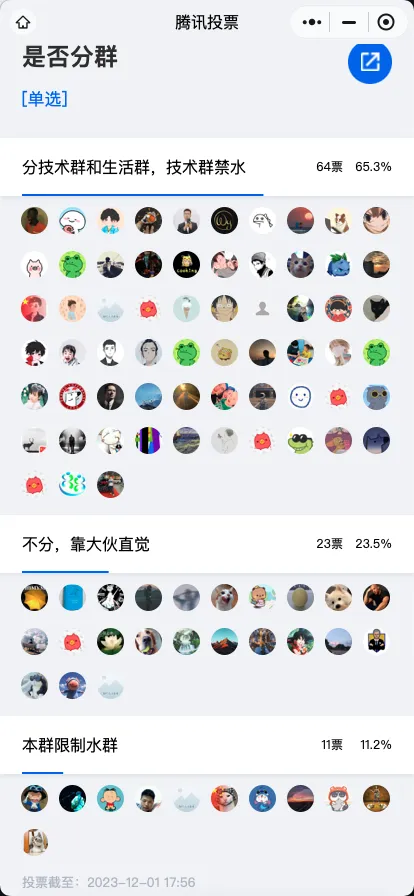 为了提高交流群的技术氛围,去年我们在群里发起过一次投票,最终的选择的策略是分群: