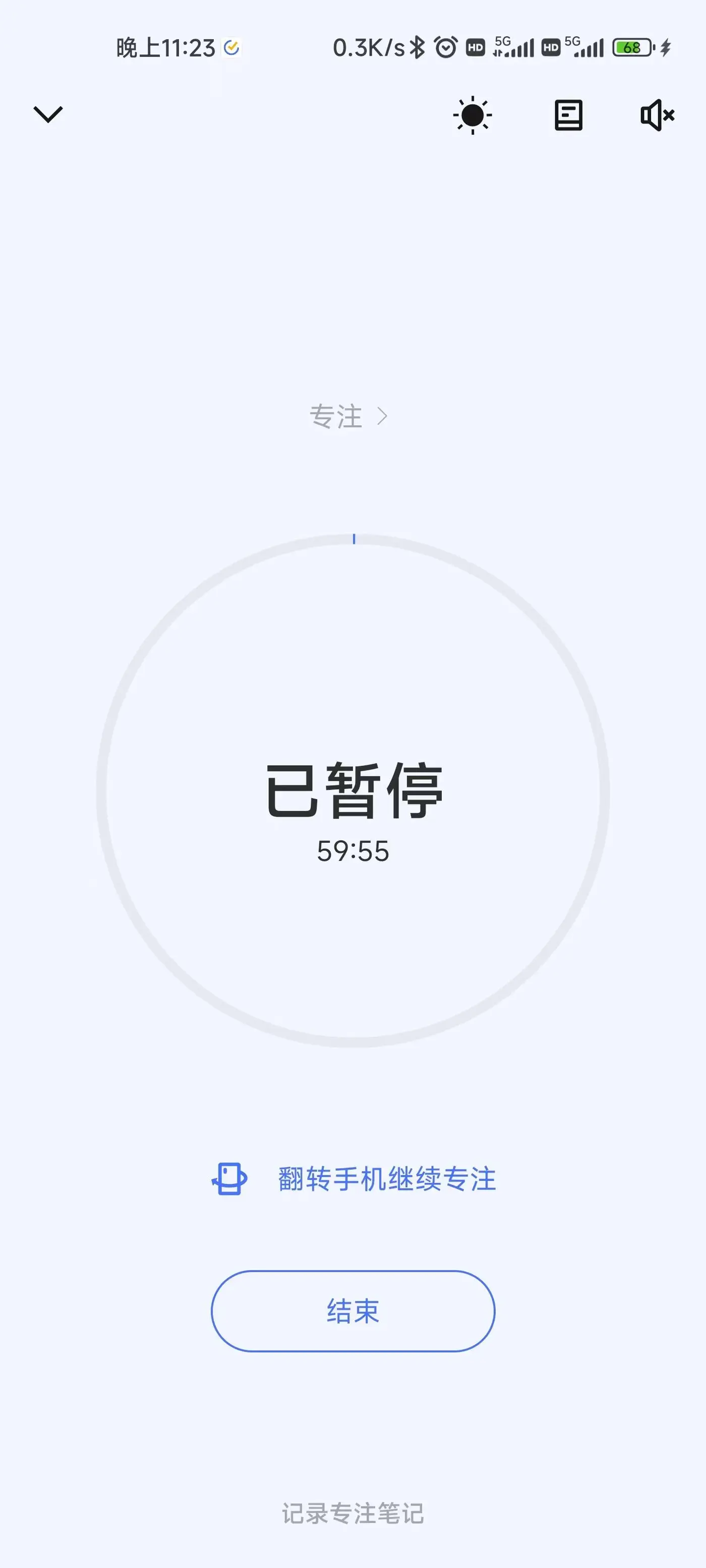 - 2、开始专注:回到专注页,翻转手机开始,如果你不喜欢这种方式,也可以重新设置到默认的点击开始方式。