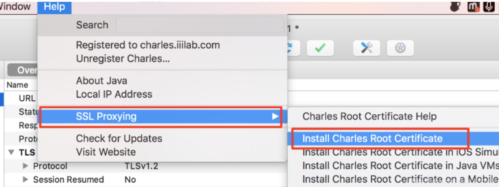 1. 打开Charles,选择Help->SSL Proxy→Install Charles Root Certificate