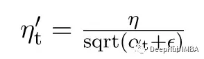 在每次迭代中,每个权重的不同学习率用alpha(t)表示,η =常数,Epsilon =正整数(以避免除0误差)