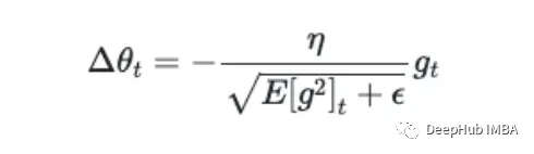这有助于在迭代次数非常大时防止低收敛率并导致更快的收敛。即使在进行了多次升级之后,Adadelta 仍以这种方式学习。与 Adagrad 不同,我们不需要为 Adadelta 选择初始学习率。