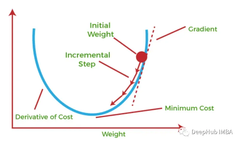 使用微积分,梯度下降迭代调整参数值,以在定义初始参数值后最小化所提供的成本函数。这是根据重复直到收敛方法完成的。