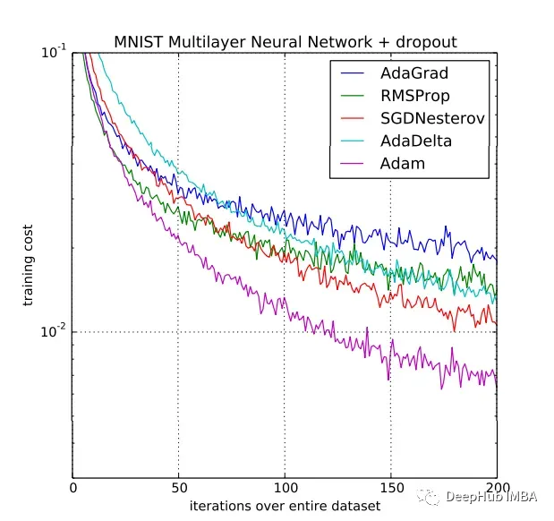 下面的截图是来自研究论文“ADAM: A METHOD FOR STOCHASTIC OPTIMIZATION”的图表显示了实验支持的理由,为什么ADAM是训练成本最低的最佳优化技术