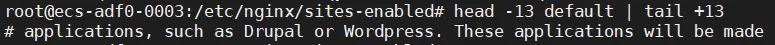 所以,上述命令的逻辑就是首先获取文件的开头 13 行内容,然后在从其第 13 行开始到最后的所有内容,很显然获取的就只有第 13 行这一行。