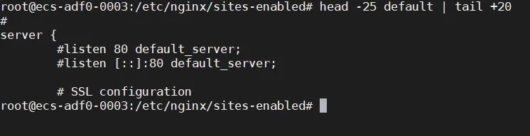 head -25 default | tail +20