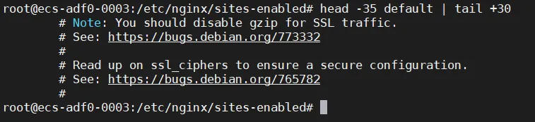 $ head -35 default | tail +30