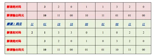 | 相对码 (二进制) | 00 | 10 | 11 | 01 | 00 | 10 | 11 | 01 | 00 |