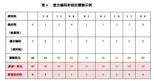 5、设四进制符号(绝对码)的二进制序列为 10,10,10,10,10,10,10,10,初始参考符号为 00 。参考表 4,列表表示绝对码的格雷码表示、差分编码后(相对码)的格雷码表示、相对码的二进制表示。