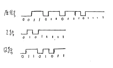 I路为2P6的奇数位再加偶数位,Q路为2P6的偶数位再加奇数位;与基带信号相比,I、Q路的信号速率都减半。
