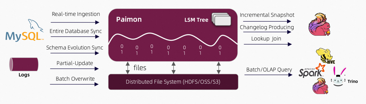 彼时还叫 Flink Table Store,如今成功晋升为 Apache 孵化项目 Apache Paimon,官网地址:Apache Paimon,首次接触在 FLIP-188: Introduce Built-in Dynamic Table Storage - Apache Flink - Apache Software Foundation 中,就被基于原生LSM的写入设计以及 universal compaction 深深吸引,便持续关注,在0.2版本发布后我们开始接入测试使用。