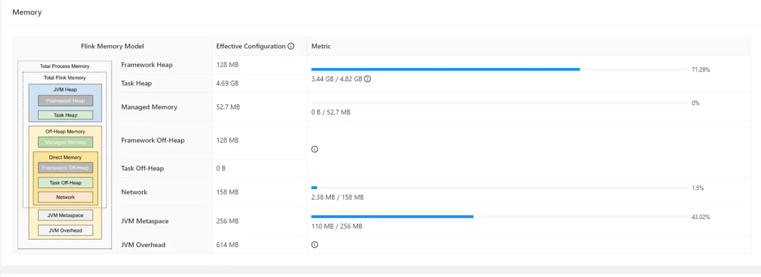 虽然 Hudi 使用类 LSM 模式进行数据写入与合并,不过有区别于 LSM 的 SSTable,合并过程全读全写,即使只变更了其中一条数据,也需要整个文件进行读取合并,这就造成 compact 过程需要比较大的内存。尤其当存在热点数据时,任务需要从一开始便保留足够的资源来应对突增的大流量数据,从而造成一定的内存资源浪费。以下是一个 Hudi 入湖任务的资源配比情况: