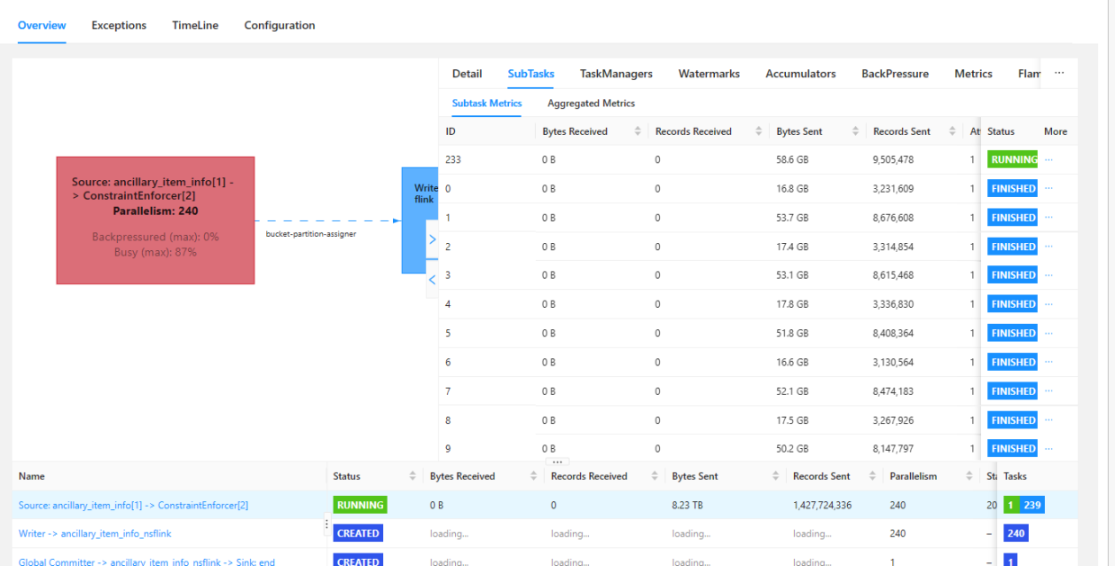 最终通过加入分批次Split方式进行解决,flink Assign splits with fixed batch size in StaticFileStoreSplitEnumerator ,效果如下: