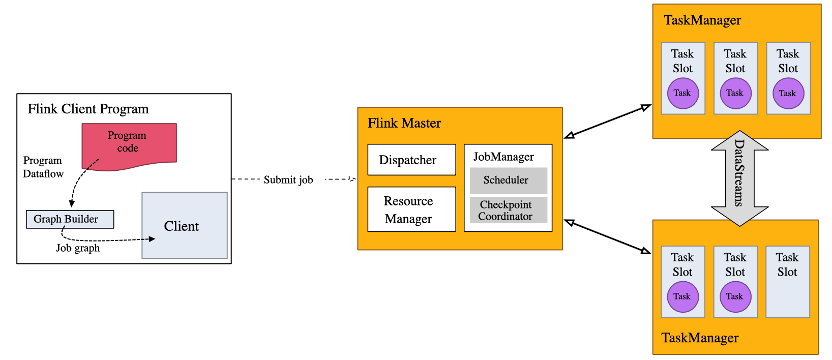 Flink 是一个分布式系统,需要有效分配和管理计算资源才能执行流应用程序。它集成了所有常见的集群资源管理器,例如 Hadoop YARN,但也可以设置作为独立集群甚至库运行。