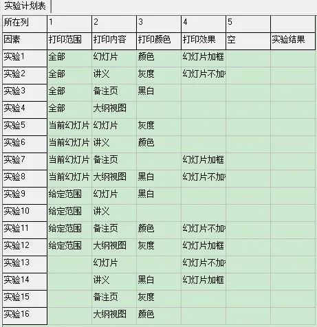 ?生成正交表(我比较笨,也懒得不查表,直接用工具生成的)