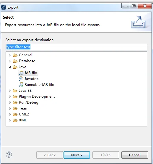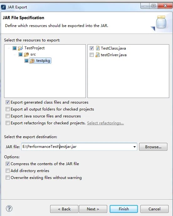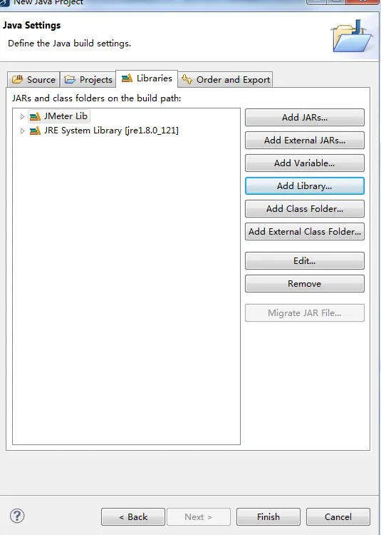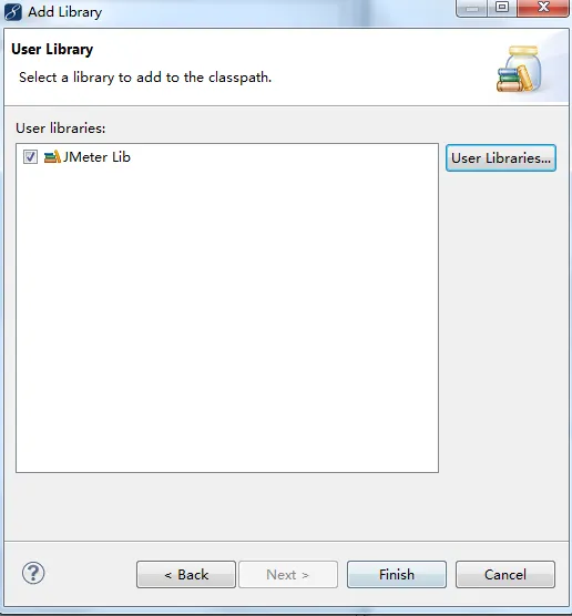 如上图,选择要导出的类,然后选择JAR file文件保存路径,最后点击Finish即可。把导出的jar放入JMeter_home/lib/ext目录下,重启JMeter